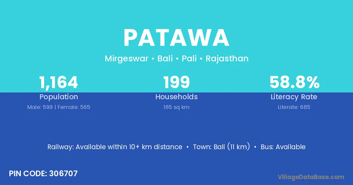 Patawa village has a total population of 1,164 people, of which 599 are males and 565 are females.