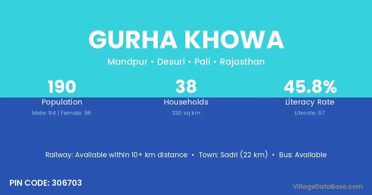 Sadri (22 km) is the nearest town to Gurha Khowa village for major economic activities and is located approximately 22 km away.