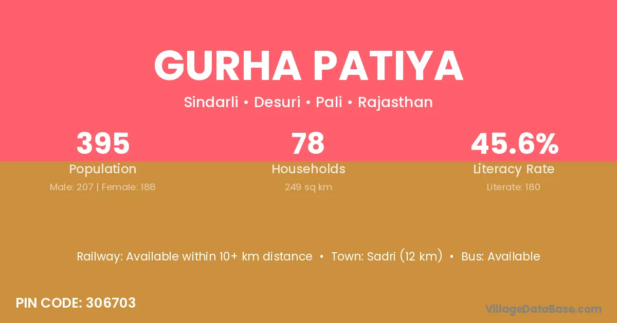 Sadri (12 km) is the nearest town to Gurha Patiya village for major economic activities and is located approximately 12 km away.