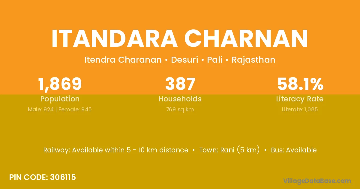 Rani (5 km) is the nearest town to Itandara Charnan village for major economic activities and is located approximately 5 km away.