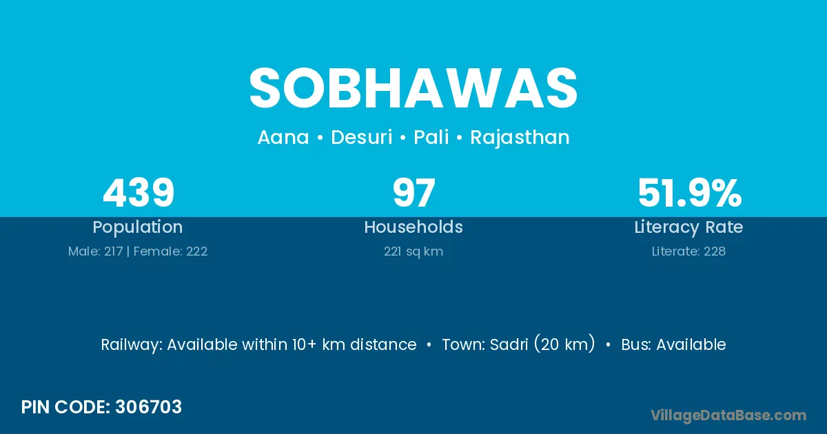 Sobhawas village has a total population of 439 people, of which 217 are males and 222 are females.