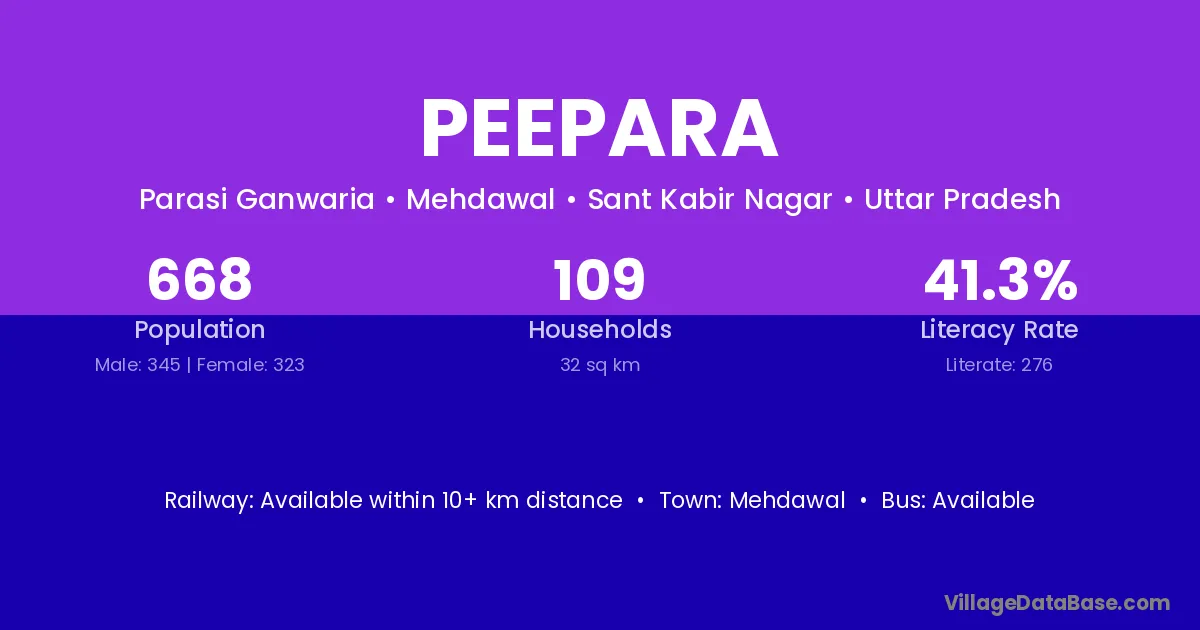 According to Census 2011 information, the village code of Peepara village is 306301.