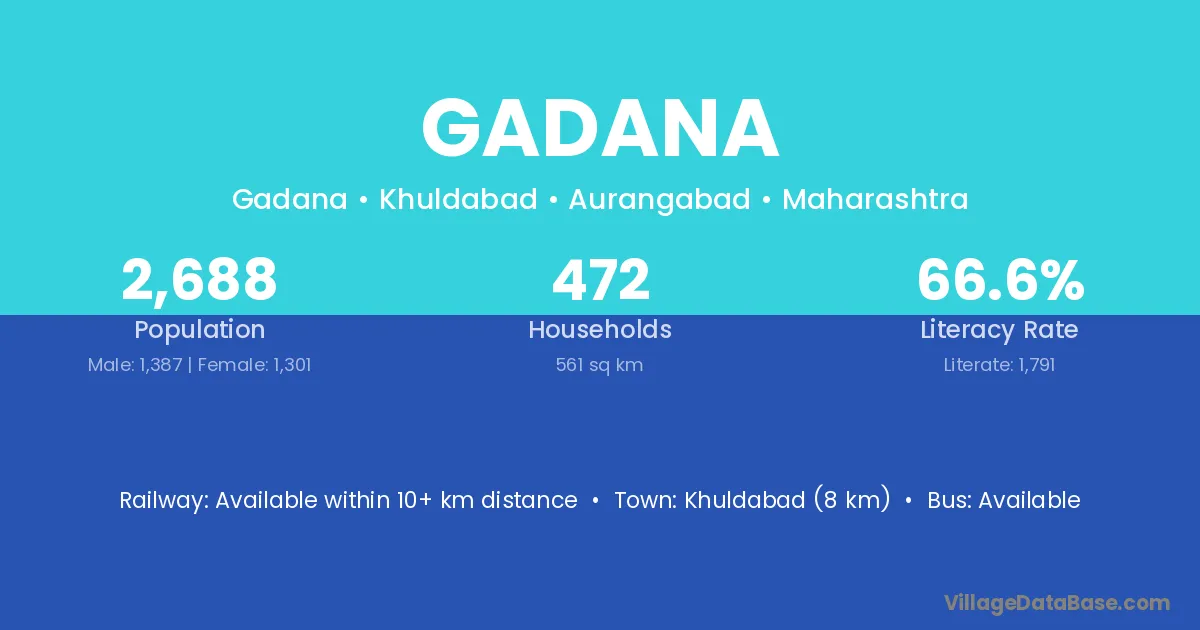 Pali (55 km) is the nearest town to Gadana village for major economic activities and is located approximately 55 km away.