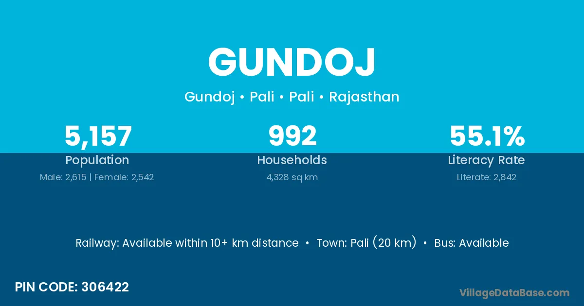 Pali (20 km) is the nearest town to Gundoj village for major economic activities and is located approximately 20 km away.