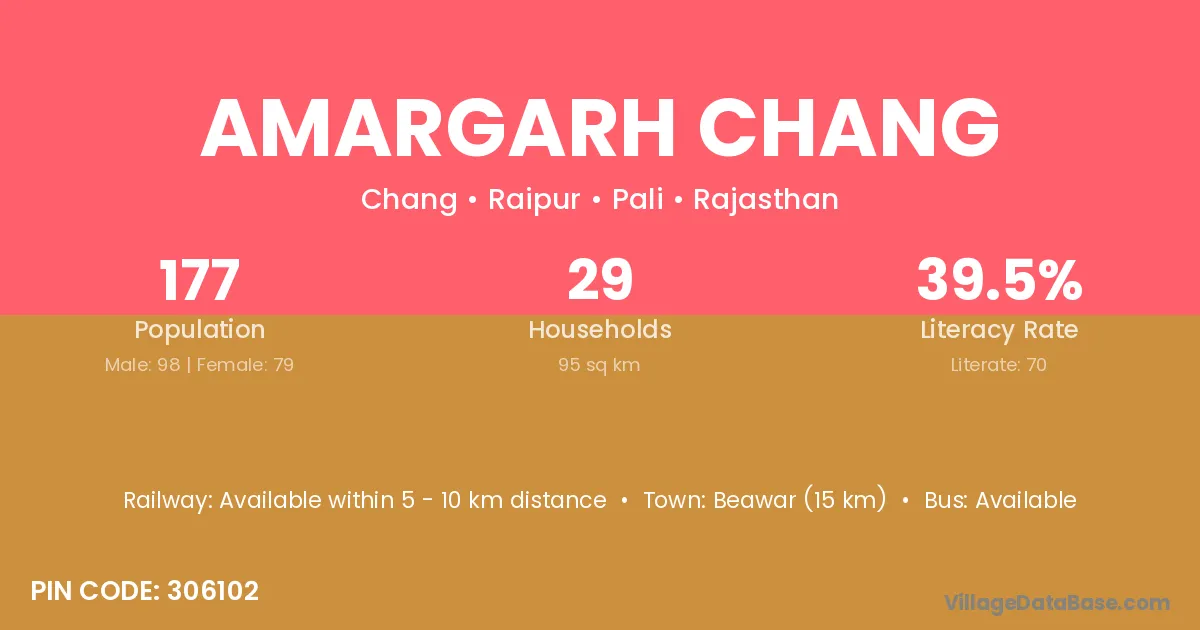 Beawar (15 km) is the nearest town to Amargarh Chang village for major economic activities and is located approximately 15 km away.