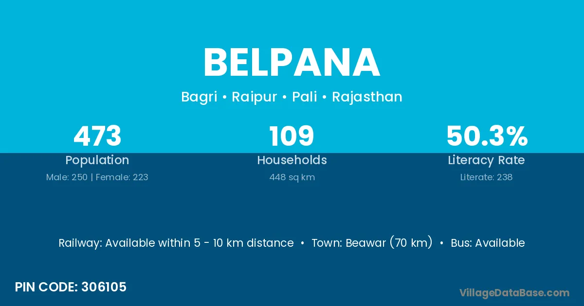 Beawar (70 km) is the nearest town to Belpana village for major economic activities and is located approximately 70 km away.