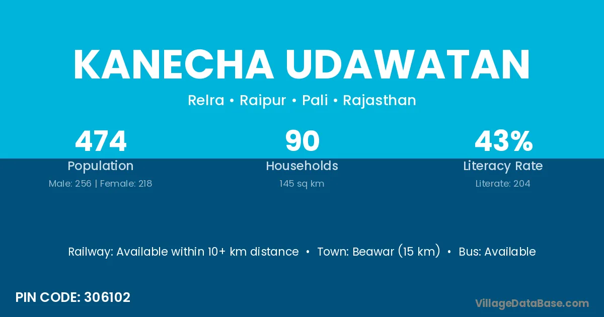 Beawar (15 km) is the nearest town to Kanecha Udawatan village for major economic activities and is located approximately 15 km away.