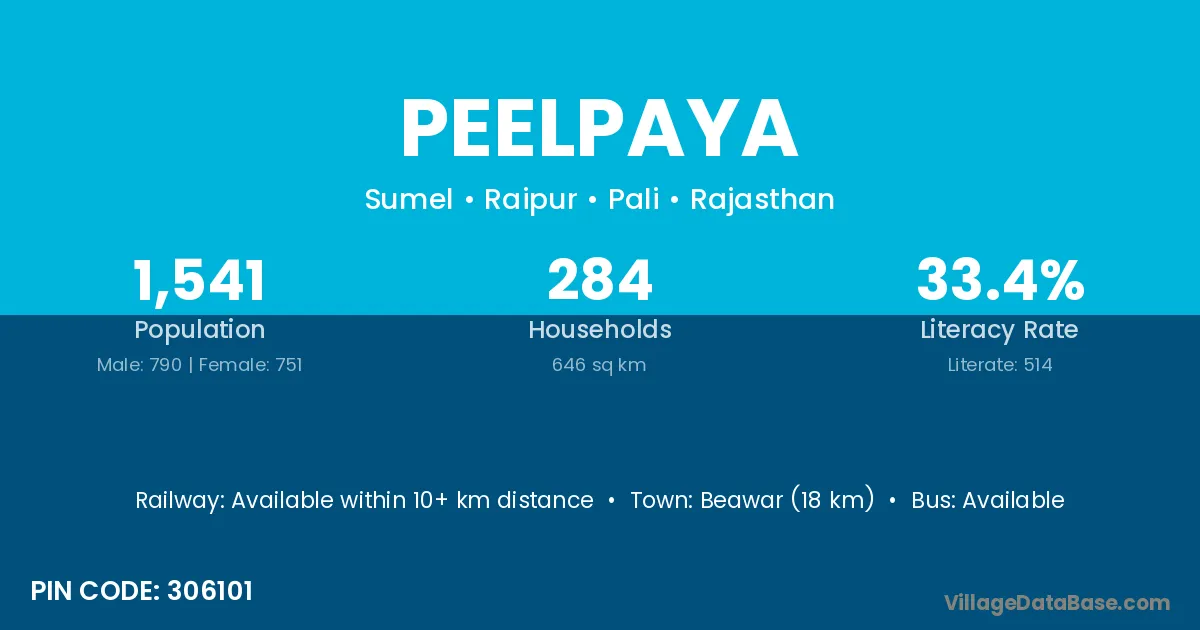 Beawar (18 km) is the nearest town to Peelpaya village for major economic activities and is located approximately 18 km away.