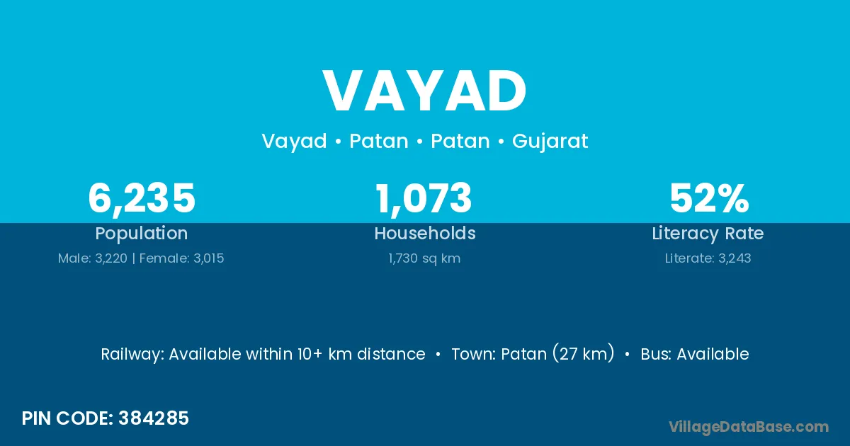 Pali (42 km) is the nearest town to Vayad village for major economic activities and is located approximately 42 km away.