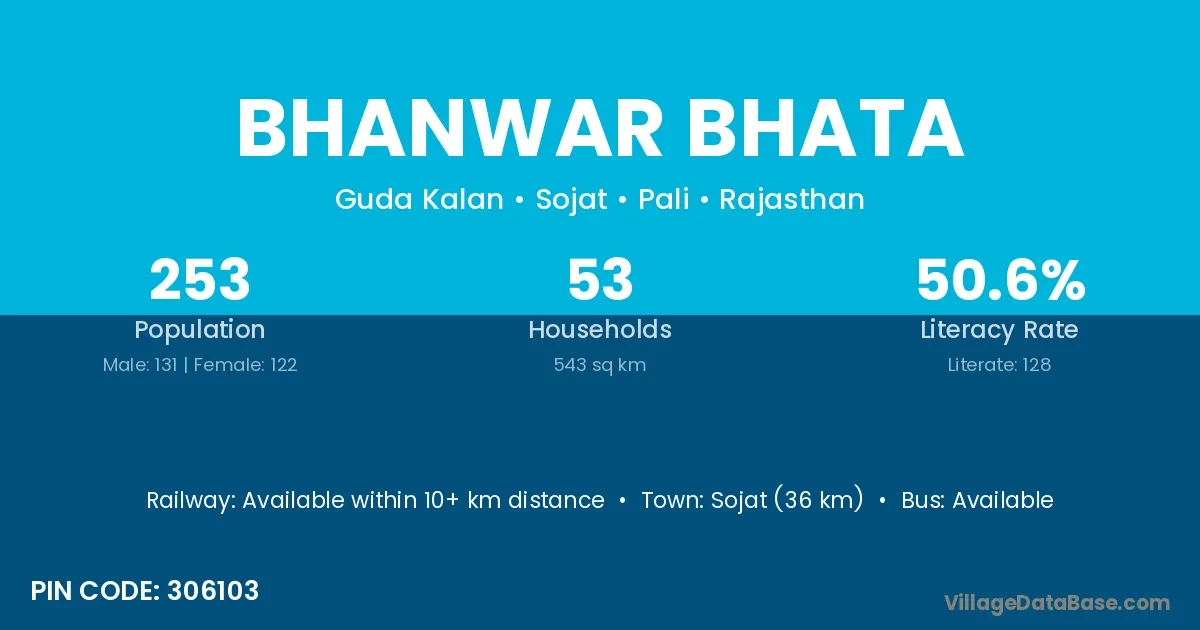 Bhanwar Bhata village has a total population of 253 people, of which 131 are males and 122 are females.
