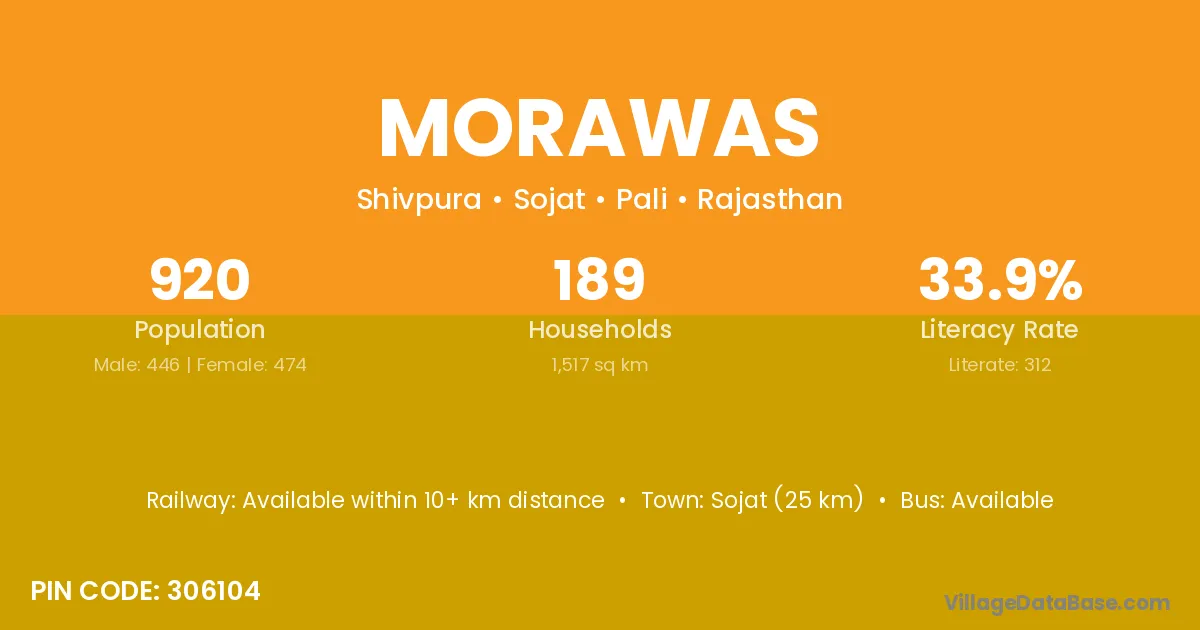 Morawas village has a total population of 920 people, of which 446 are males and 474 are females.