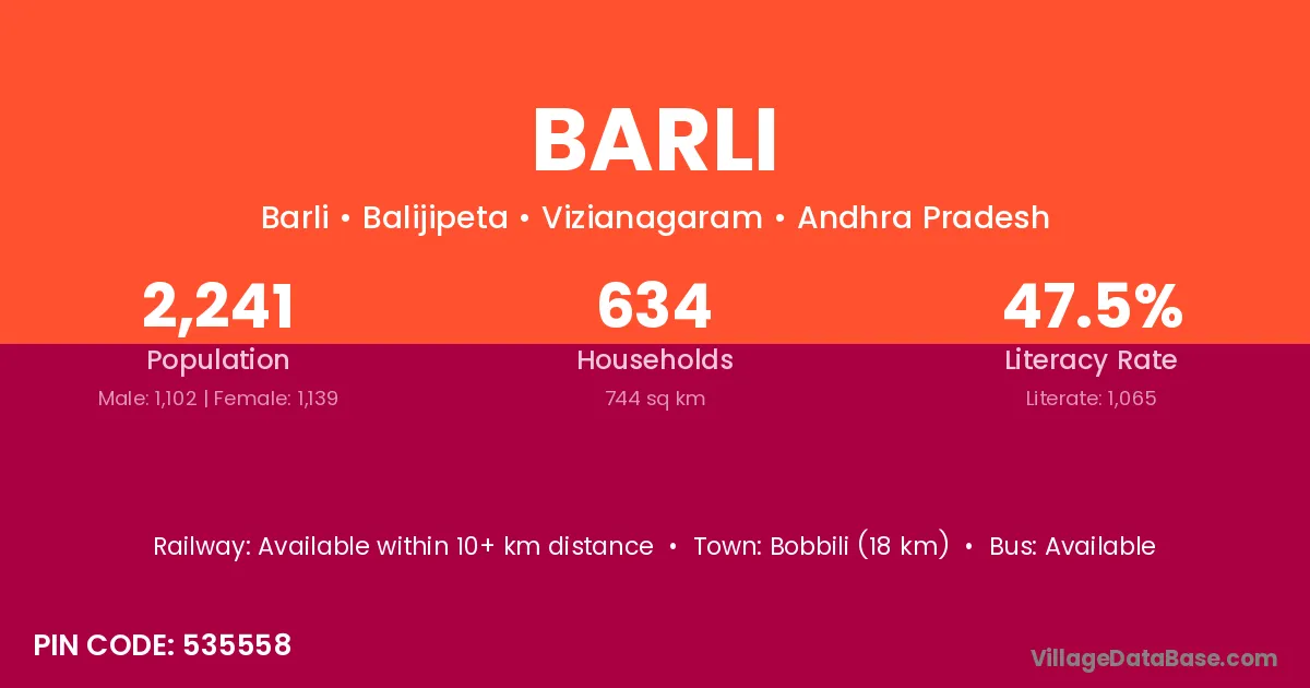 Barli village has a total population of 483 people, of which 237 are males and 246 are females.