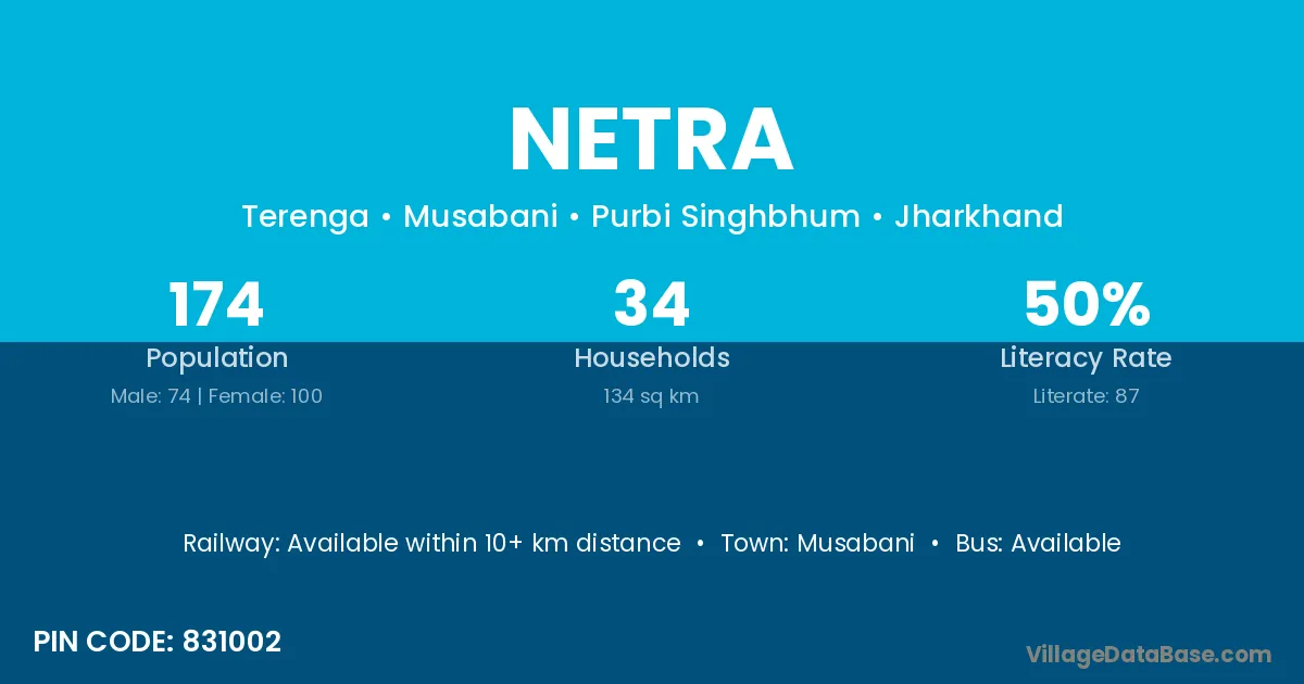 According to Census 2011 information, the village code of Netra village is 306902.