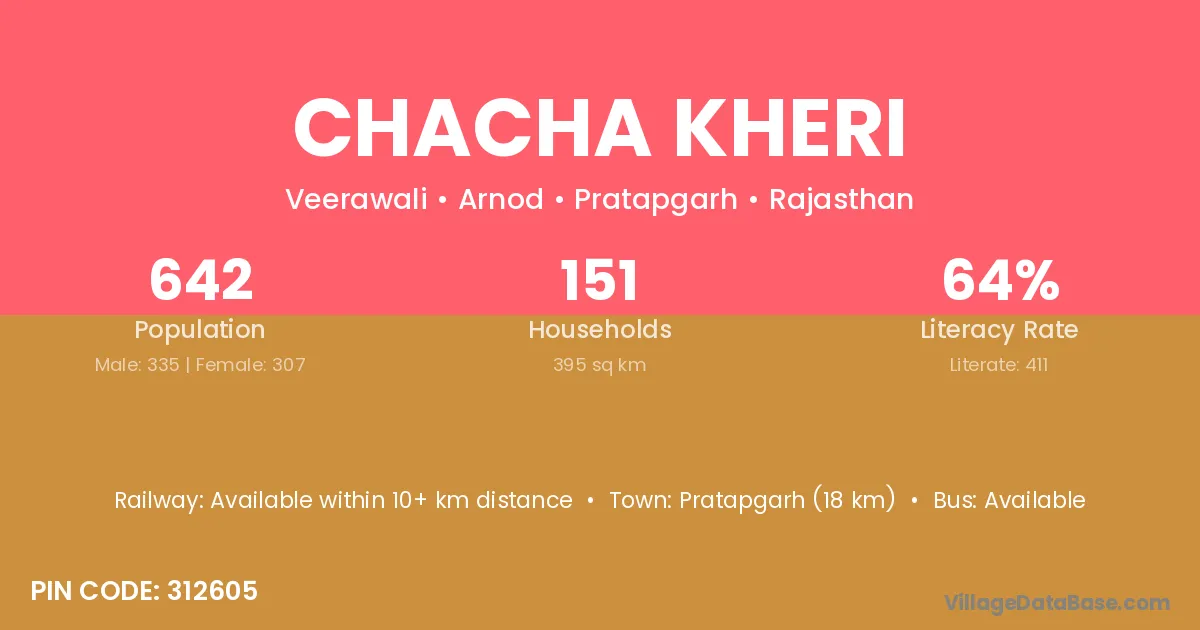Pratapgarh (18 km) is the nearest town to Chacha Kheri village for major economic activities and is located approximately 18 km away.