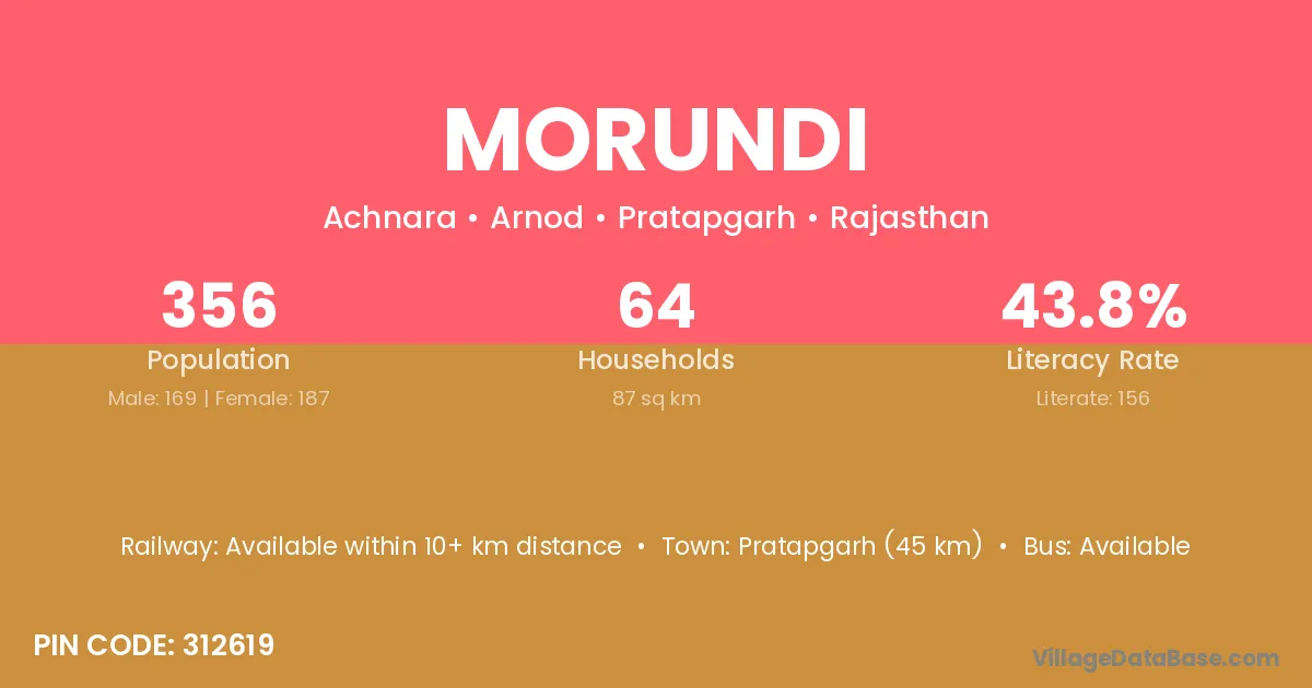 Pratapgarh (45 km) is the nearest town to Morundi village for major economic activities and is located approximately 45 km away.
