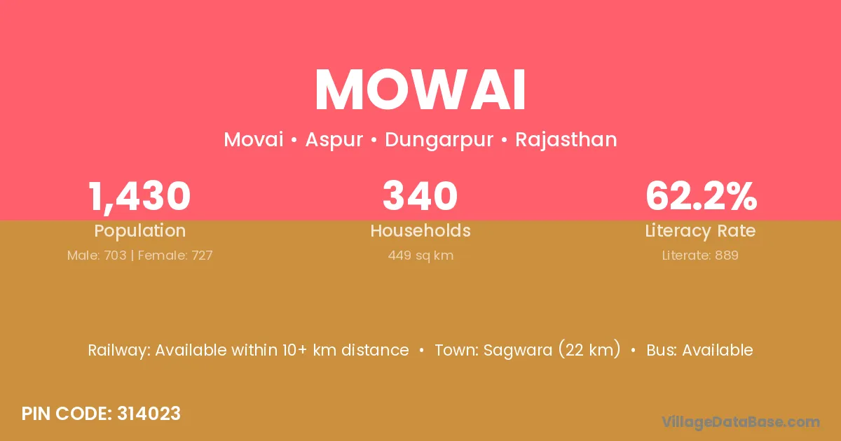 Pratapgarh (32 km) is the nearest town to Mowai village for major economic activities and is located approximately 32 km away.