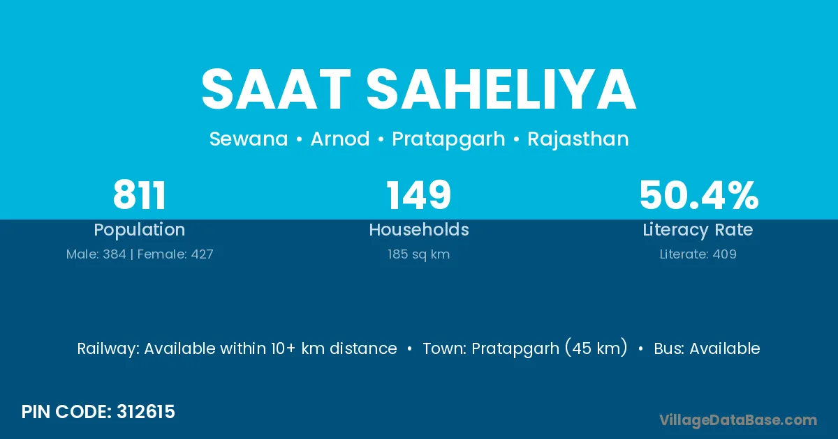 Pratapgarh (45 km) is the nearest town to Saat Saheliya village for major economic activities and is located approximately 45 km away.