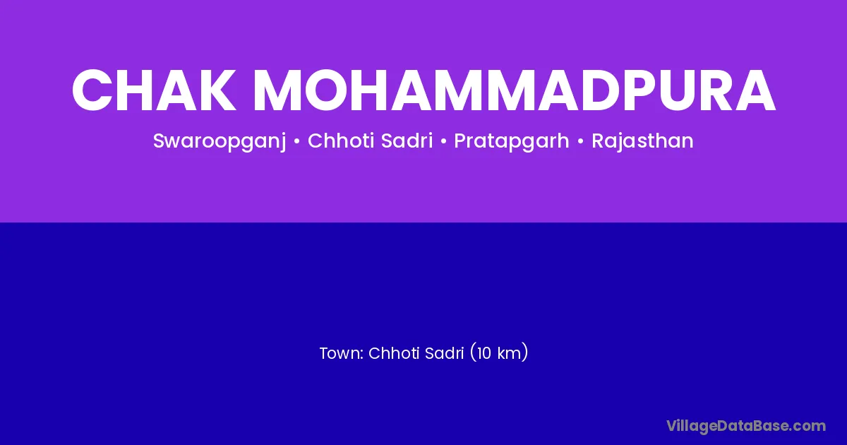 Chhoti Sadri (10 km) is the nearest town to Chak Mohammadpura village for major economic activities and is located approximately 10 km away.