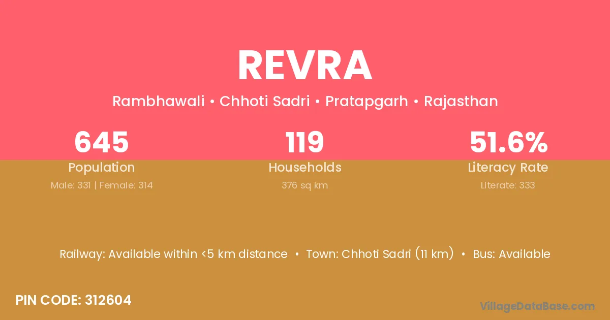 Chhoti Sadri (11 km) is the nearest town to Revra village for major economic activities and is located approximately 11 km away.