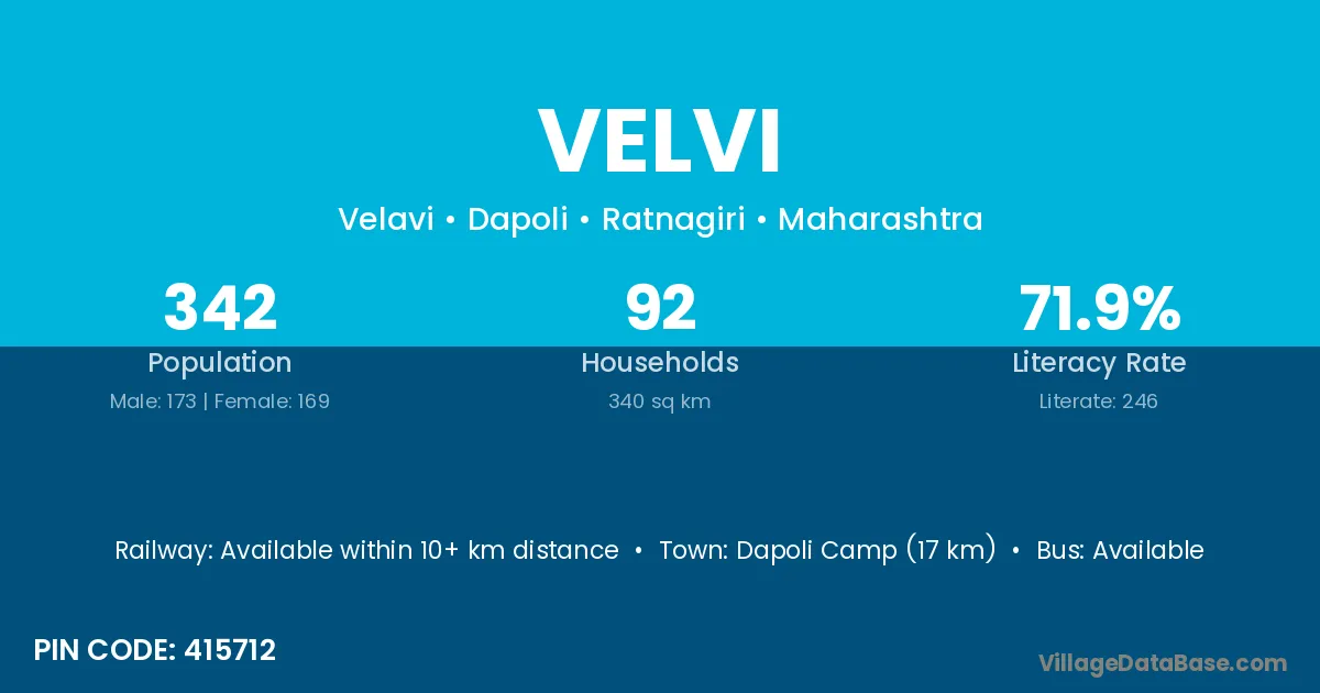 Pratapgarh (65 km) is the nearest town to Velvi village for major economic activities and is located approximately 65 km away.