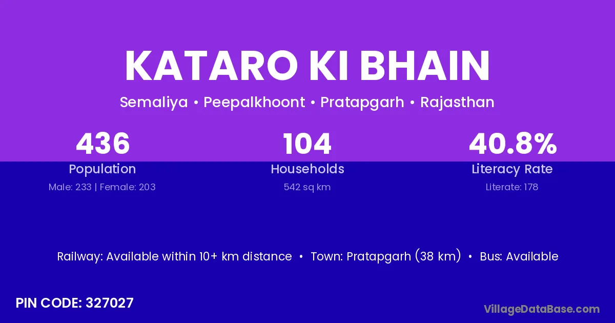 Pratapgarh (38 km) is the nearest town to Kataro Ki Bhain village for major economic activities and is located approximately 38 km away.