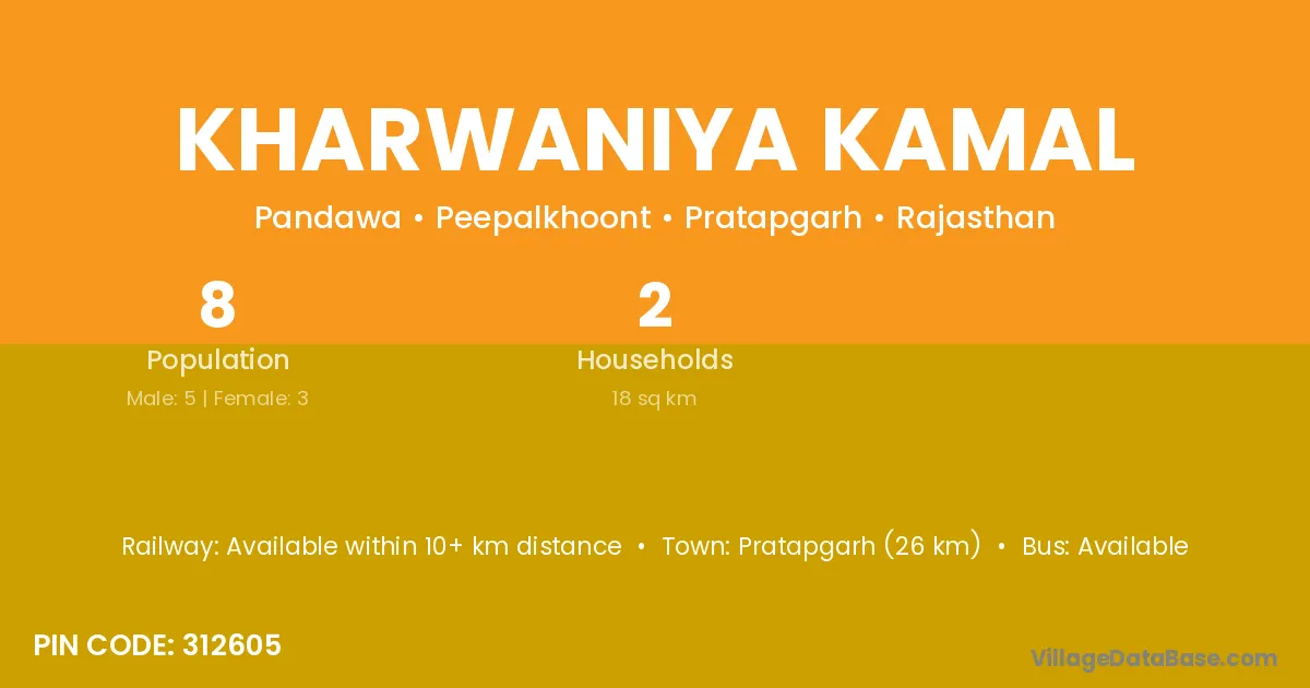 Pratapgarh (26 km) is the nearest town to Kharwaniya Kamal village for major economic activities and is located approximately 26 km away.