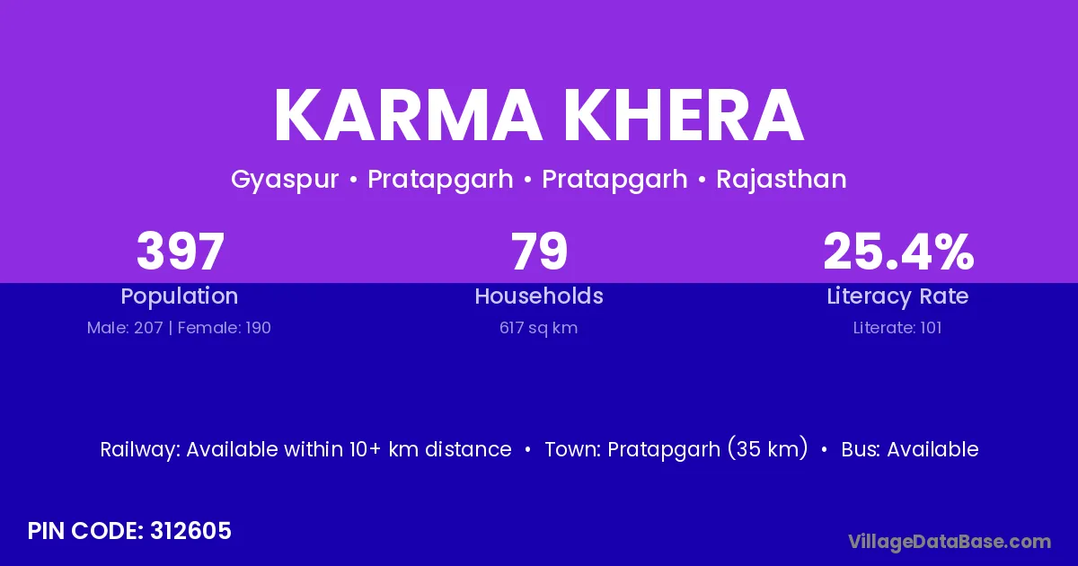 Pratapgarh (35 km) is the nearest town to Karma Khera village for major economic activities and is located approximately 35 km away.