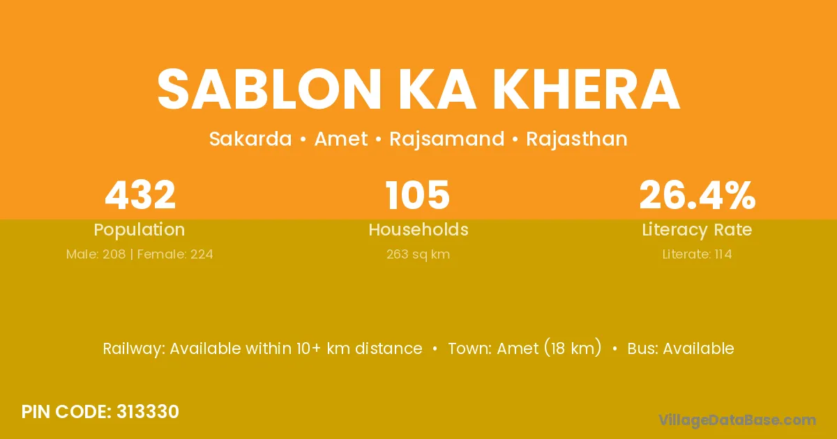 Amet (18 km) is the nearest town to Sablon Ka Khera village for major economic activities and is located approximately 18 km away.