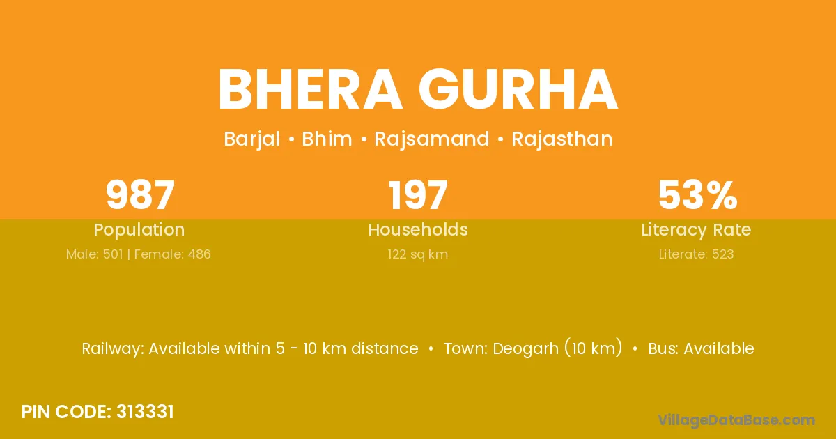 Bhera Gurha village has a total population of 987 people, of which 501 are males and 486 are females.