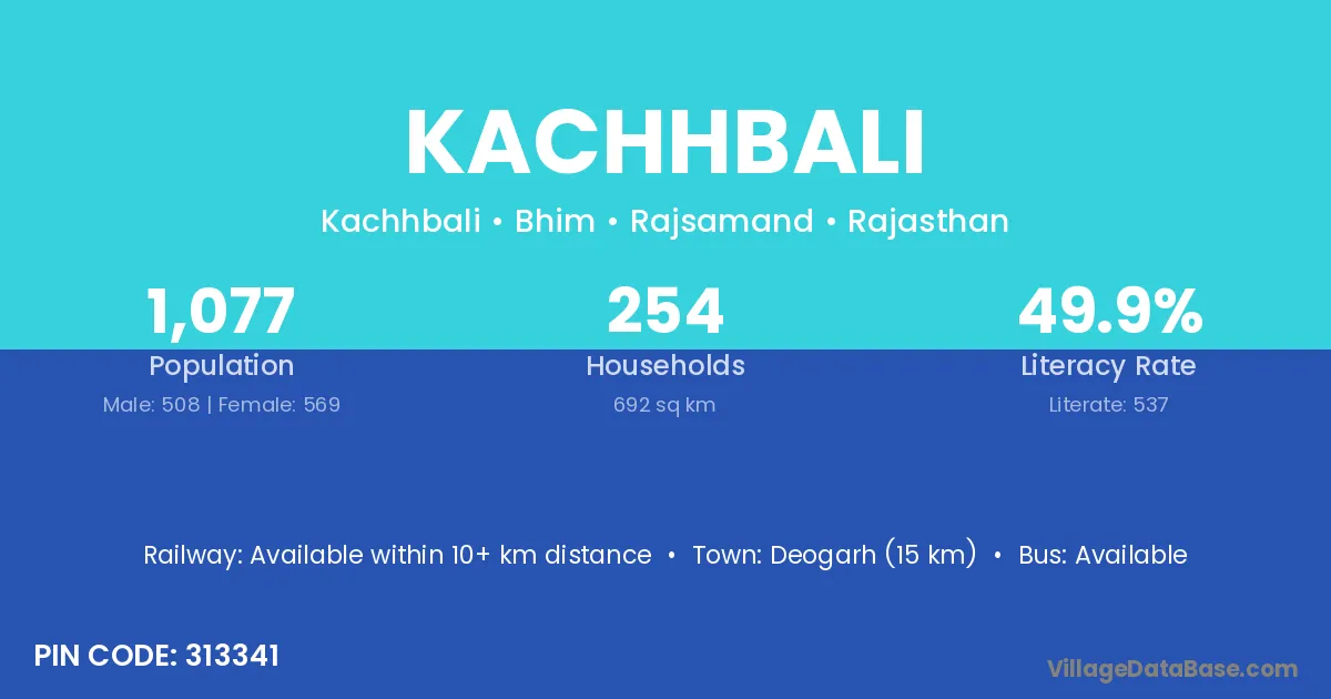 Kachhbali village has a total population of 1,077 people, of which 508 are males and 569 are females.