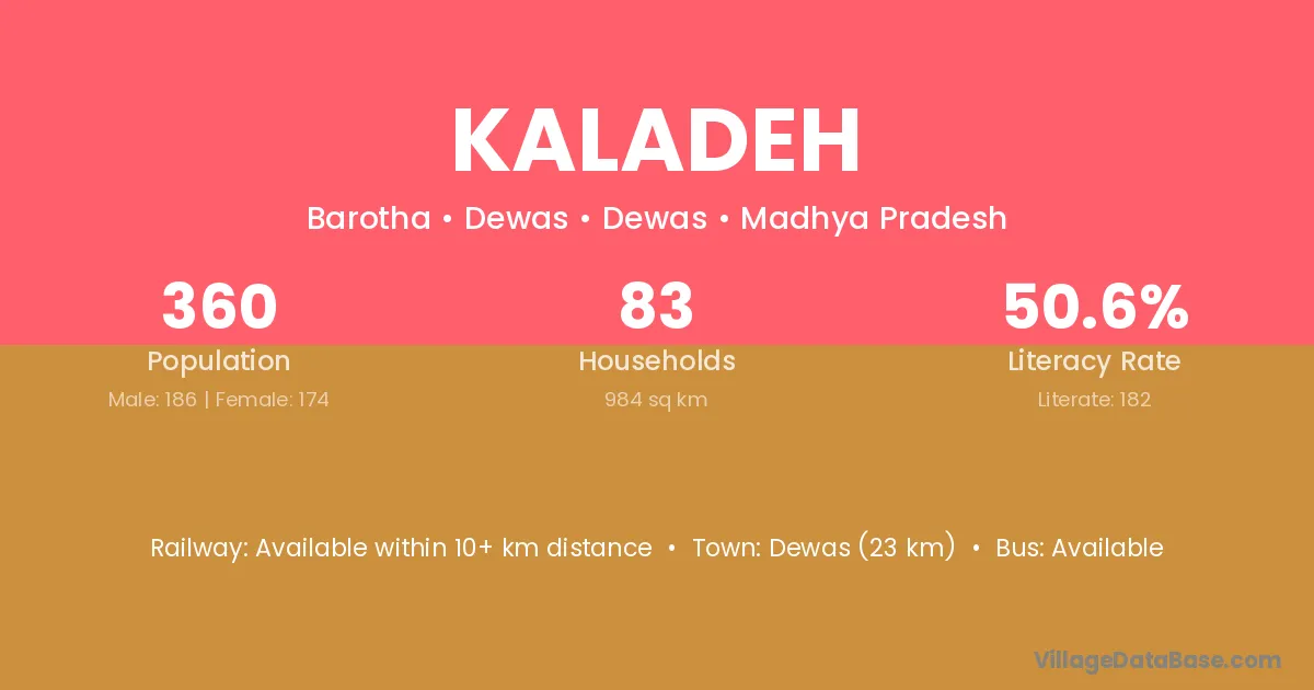 The literacy rate of Kaladeh village is 60.95%. Male literacy stands at 75.24% and female literacy at 47.51%.