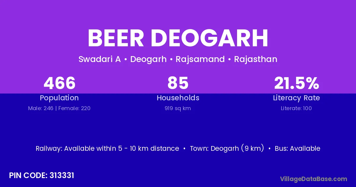 Beer Deogarh village is located in the Deogarh Tehsil of the Rajsamand district in Rajasthan .