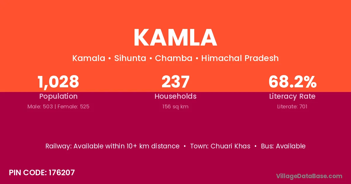 Kamla village has a total population of 1,282 people, of which 643 are males and 639 are females.