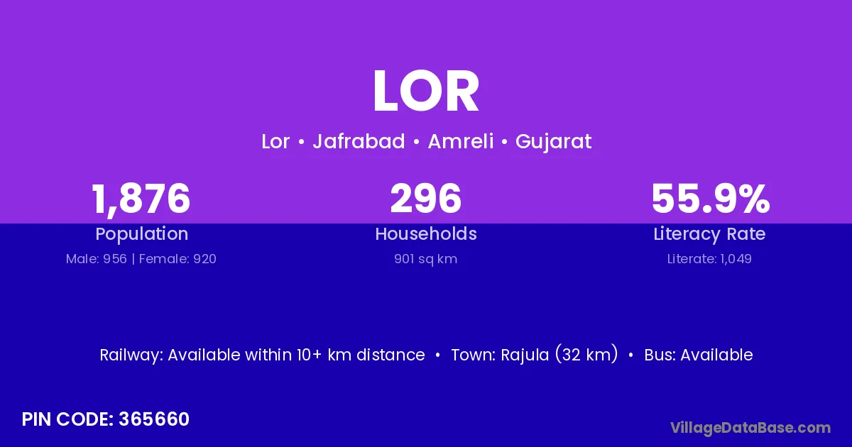Amet (22 km) is the nearest town to Lor village for major economic activities and is located approximately 22 km away.