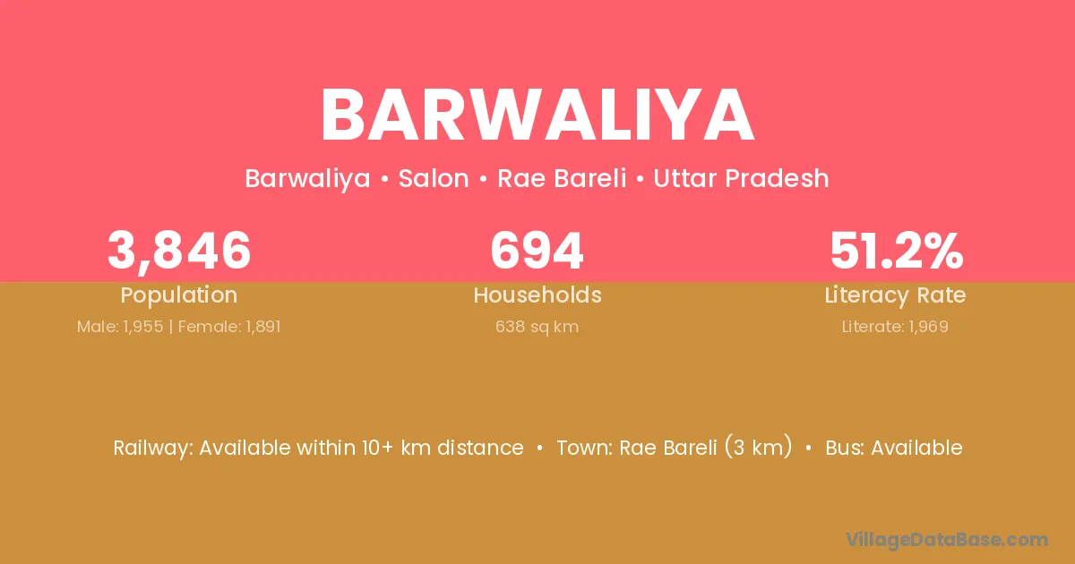 Barwaliya village has a total population of 455 people, of which 230 are males and 225 are females.