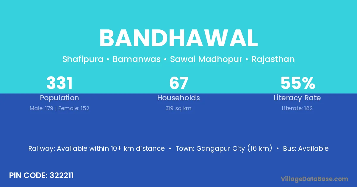 Gangapur City (16 km) is the nearest town to Bandhawal village for major economic activities and is located approximately 16 km away.