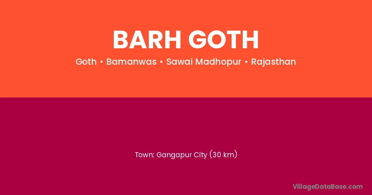 Gangapur City (30 km) is the nearest town to Barh Goth village for major economic activities and is located approximately 30 km away.