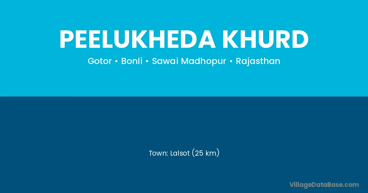 Lalsot (25 km) is the nearest town to Peelukheda Khurd village for major economic activities and is located approximately 25 km away.