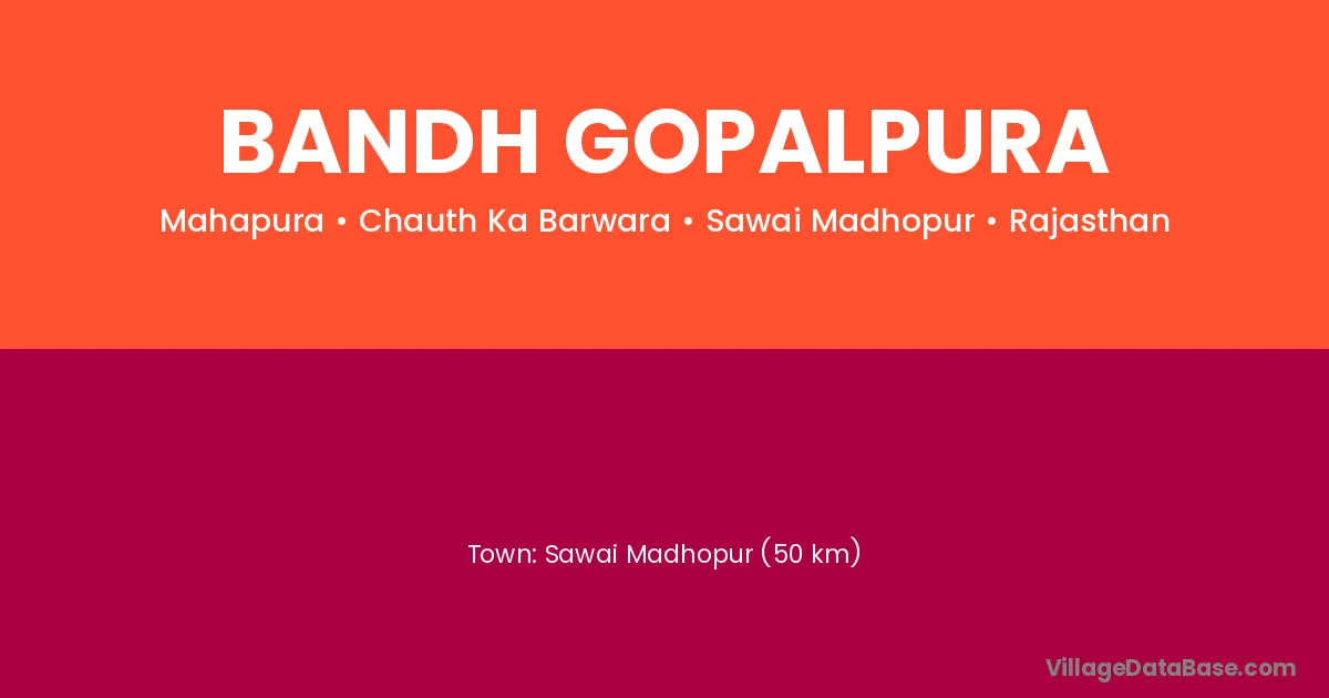 Sawai Madhopur (50 km) is the nearest town to Bandh Gopalpura village for major economic activities and is located approximately 50 km away.