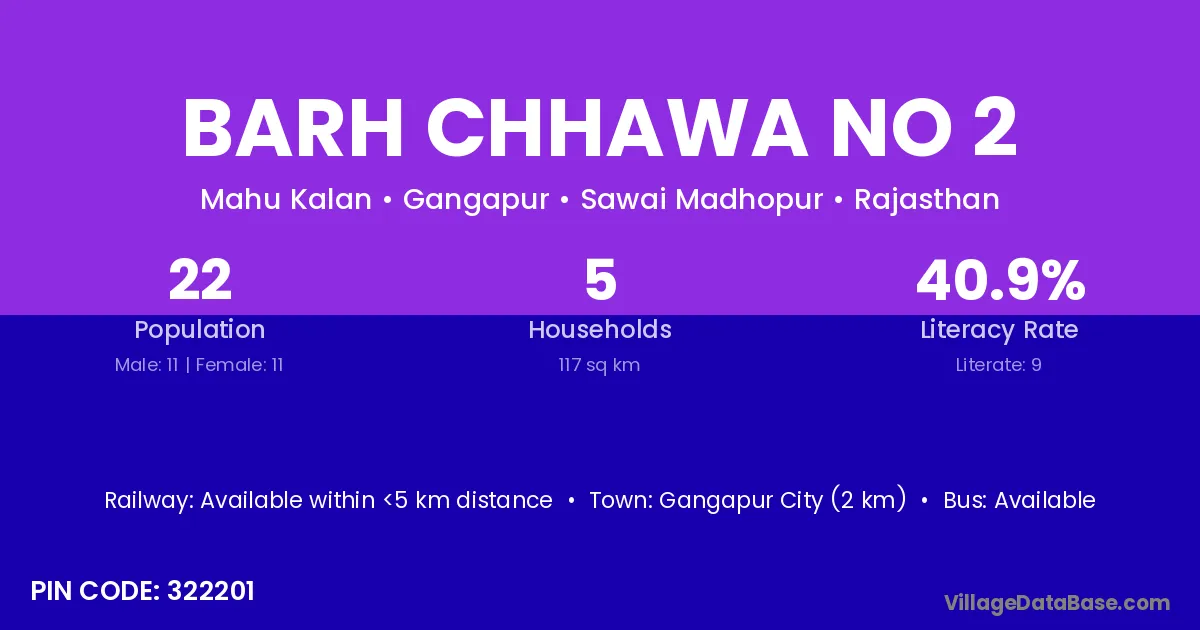 Gangapur City (2 km) is the nearest town to Barh Chhawa No 2 village for major economic activities and is located approximately 2 km away.