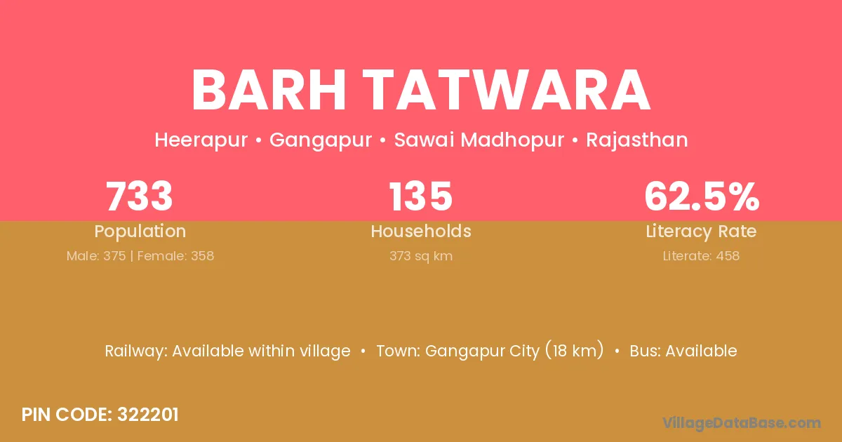 Gangapur City (18 km) is the nearest town to Barh Tatwara village for major economic activities and is located approximately 18 km away.