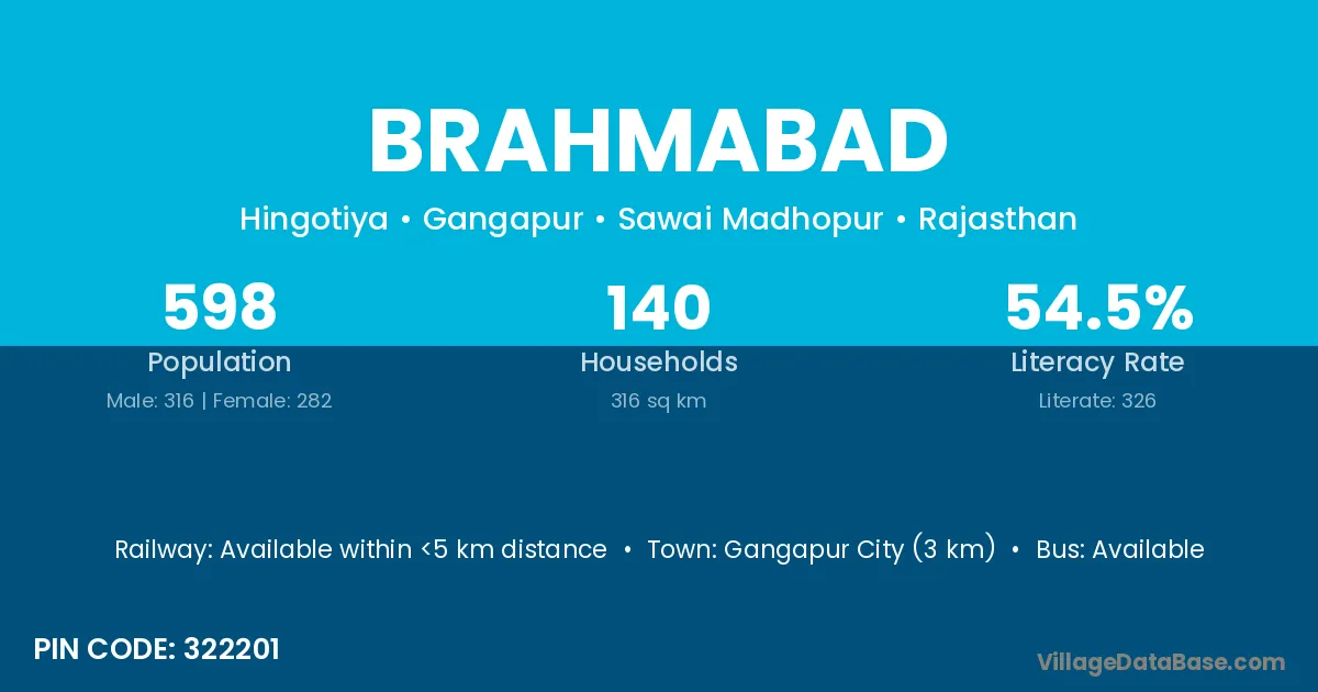 Gangapur City (3 km) is the nearest town to Brahmabad village for major economic activities and is located approximately 3 km away.