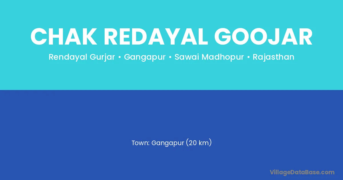 Gangapur (20 km) is the nearest town to Chak Redayal Goojar village for major economic activities and is located approximately 20 km away.