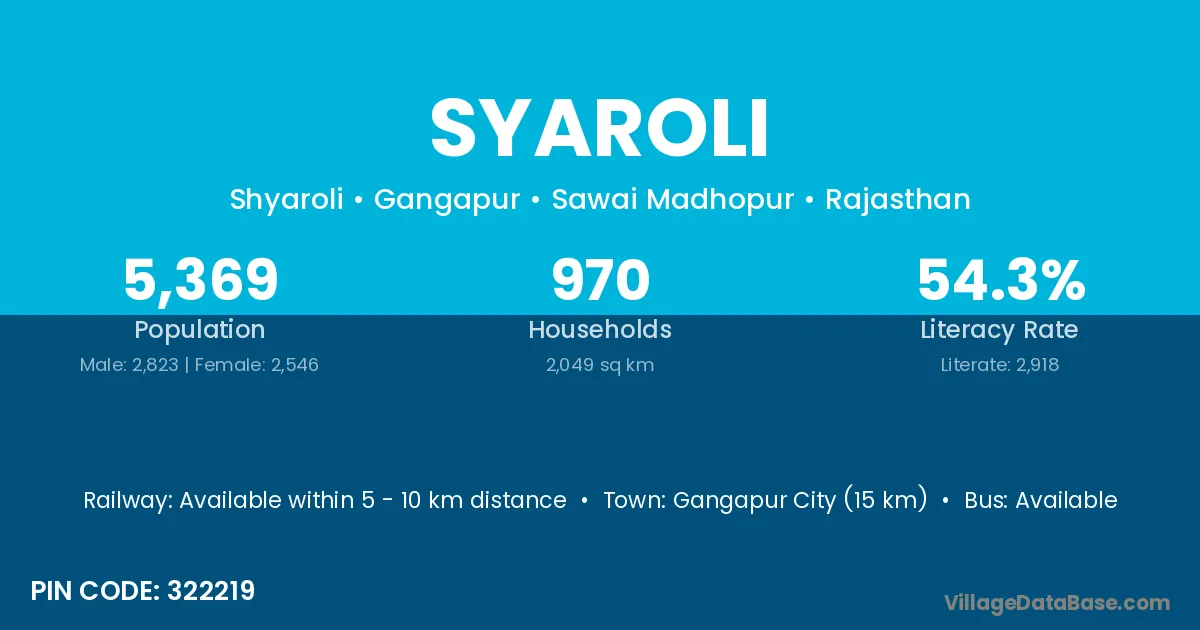 Gangapur City (15 km) is the nearest town to Syaroli village for major economic activities and is located approximately 15 km away.