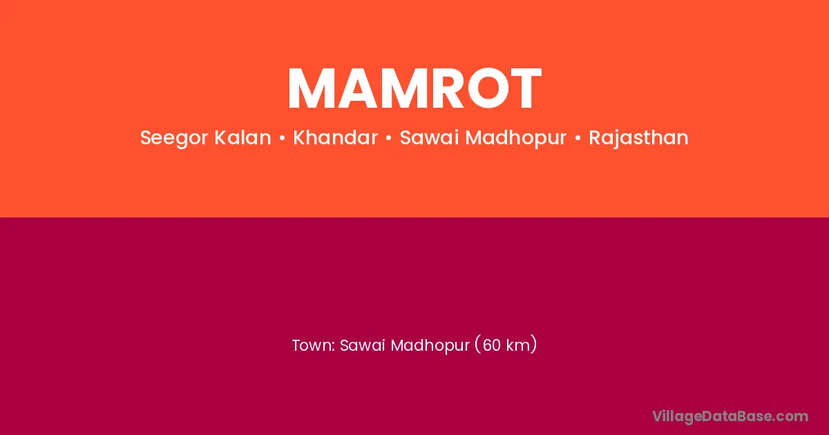 Sawai Madhopur (60 km) is the nearest town to Mamrot village for major economic activities and is located approximately 60 km away.