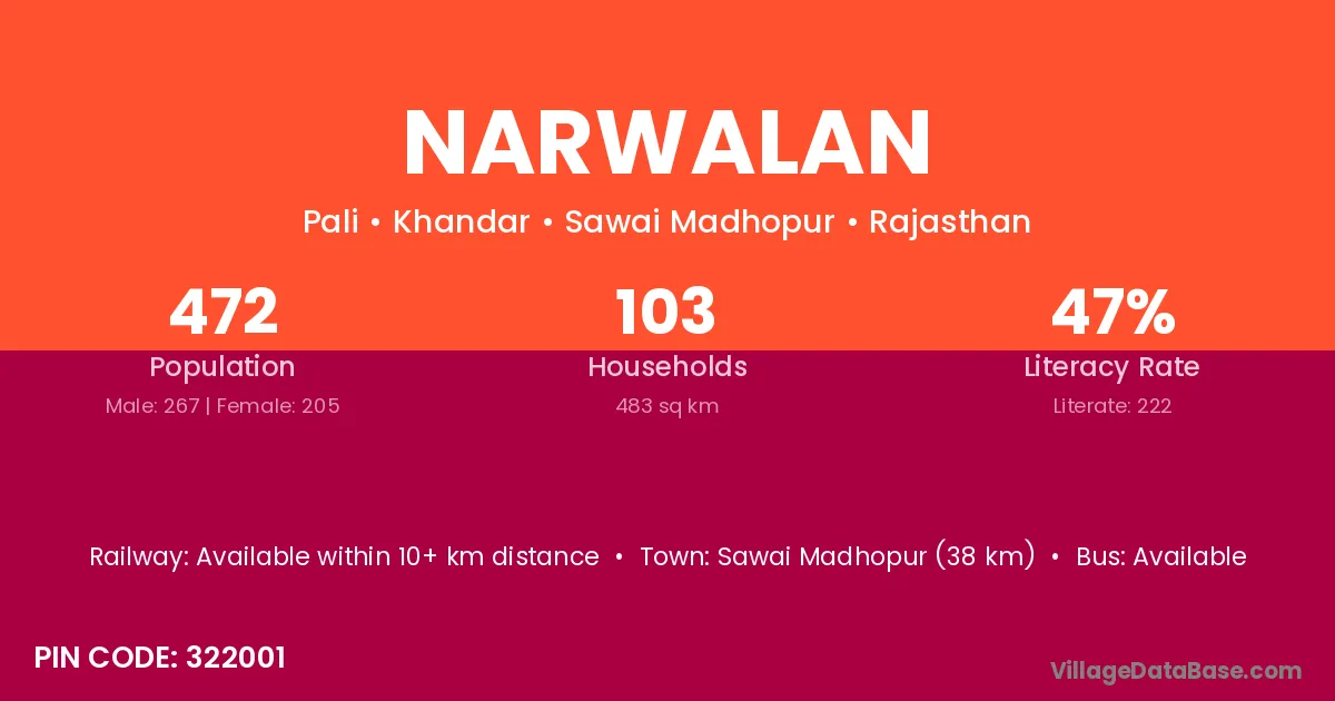 Sawai Madhopur (38 km) is the nearest town to Narwalan village for major economic activities and is located approximately 38 km away.