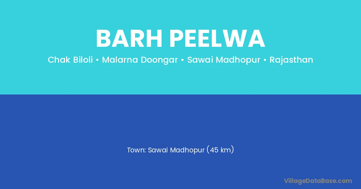 Sawai Madhopur (45 km) is the nearest town to Barh Peelwa village for major economic activities and is located approximately 45 km away.