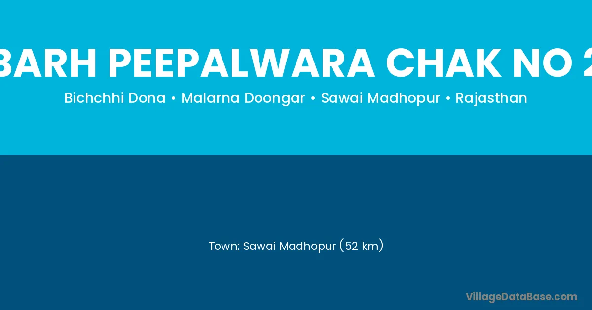 Sawai Madhopur (52 km) is the nearest town to Barh Peepalwara Chak No 2 village for major economic activities and is located approximately 52 km away.