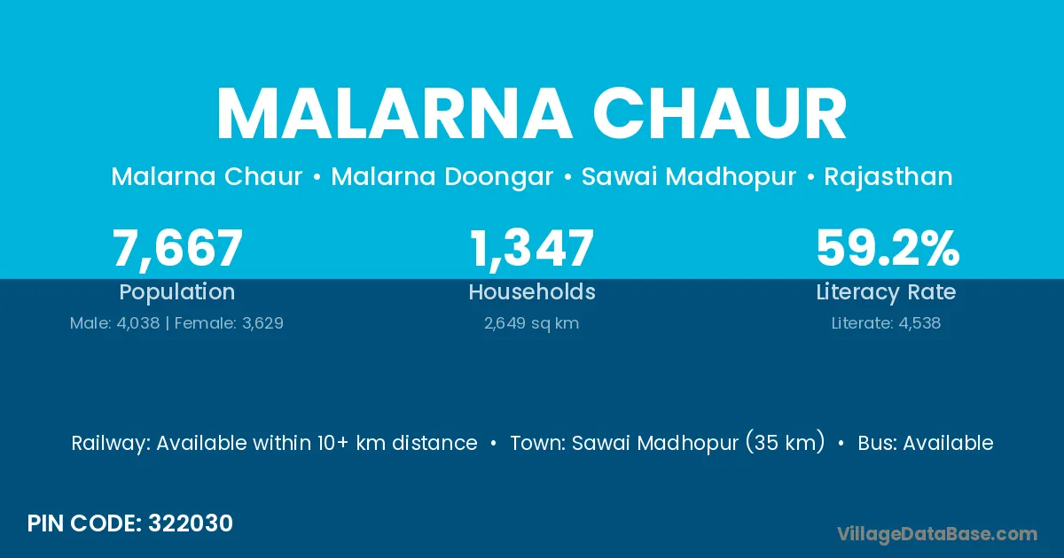 Sawai Madhopur (35 km) is the nearest town to Malarna Chaur village for major economic activities and is located approximately 35 km away.