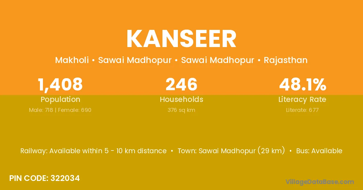 Sawai Madhopur (29 km) is the nearest town to Kanseer village for major economic activities and is located approximately 29 km away.